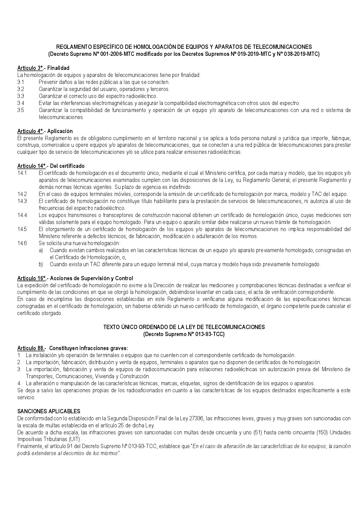 MTC (Ministerio de Telecomunicaciones), the national body of communications in Peru, regulates that all products connected to the public phone system and products emitting radio frequency require MTC approval and registration before they can be commercialized in the country.