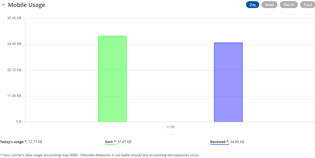 Note: your carrier's data usage accounting may differ. Teltonika is not liable should any accounting discrepancies occur.