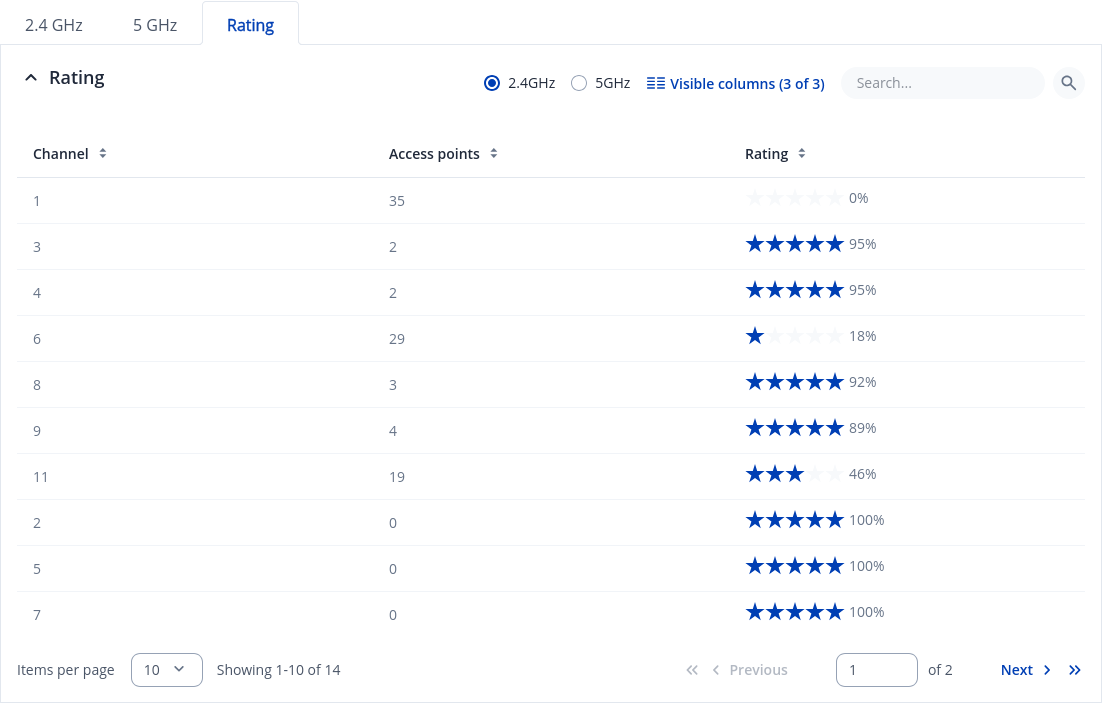 The Channel Interference section shows interactive diagram of channels interference radio bands that displays real-time allocation of channels in the environment. To start the channel interference scan - press `Perform scan` button.