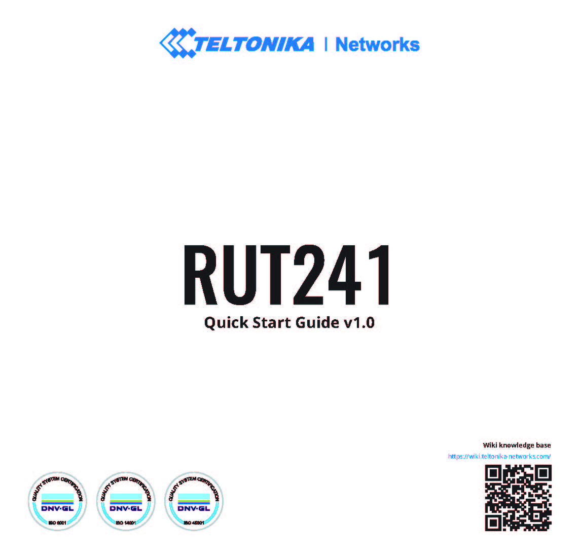 RUT241 devices manufactured starting from Q3 2022 will have a new QSG flyer in the packaging. The new QSG flyer includes the short version of QSG with a QR code/link to the full Web QSG version: teltonika-networks.com/QSG_RUT241