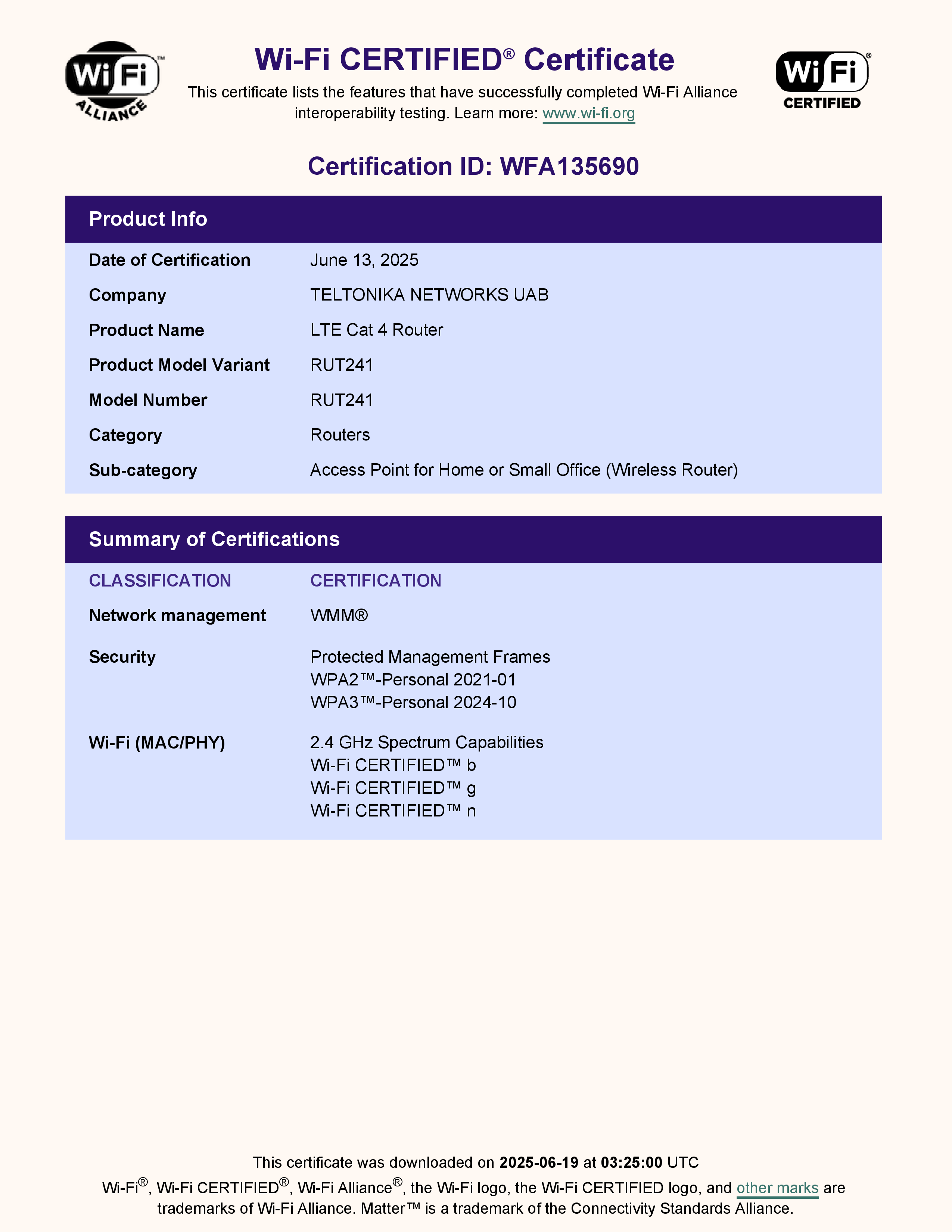 To download a PDF version of the Wi-Fi CERTIFIED™ Certificate, click here.