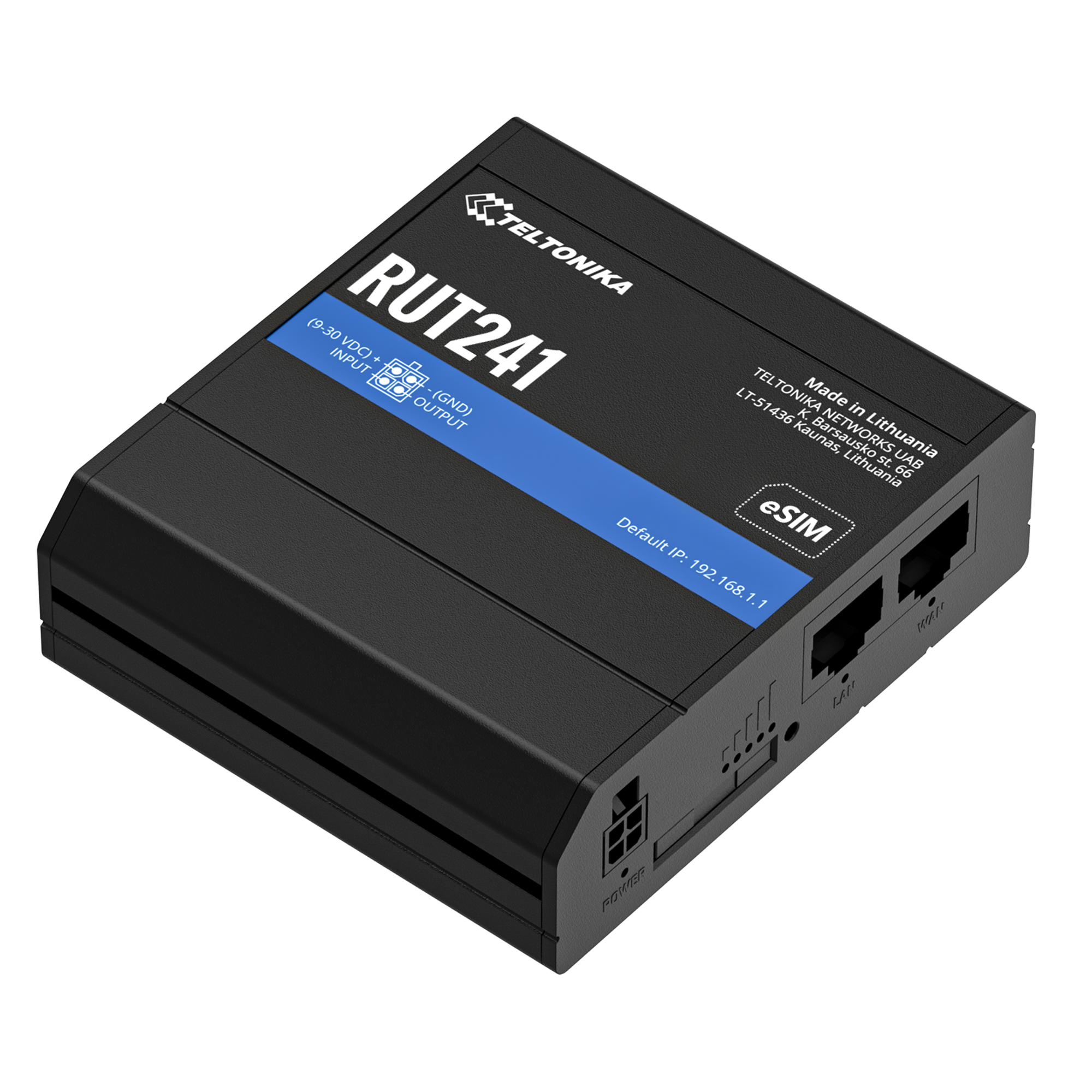 RUT241 is a compact industrial 4G (LTE) router equipped with 2x Ethernet ports, WiFi and RutOS software for advanced networking solutions.