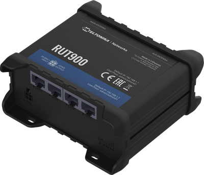 RUT900 is a compact industrial 3G router equipped with 4x Ethernet ports, WiFi, Dual-SIM and RutOS software for advanced networking solutions.