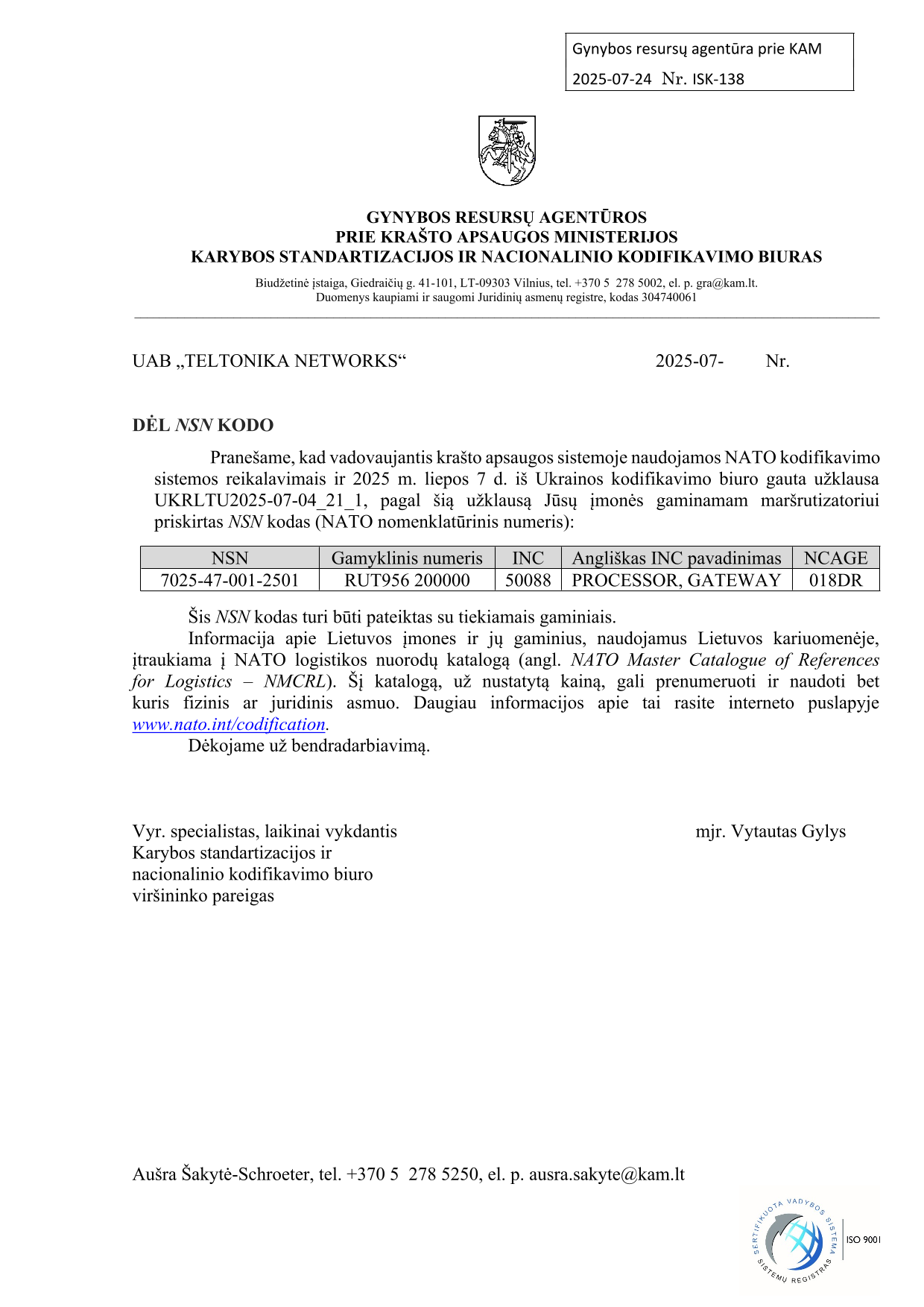 The first two digits of the NIIN (the ef pair) is used to record which country was the first to codify the item—which one first recognized it as an important item of supply. This is generally the country of origin, meaning the country of final manufacture. The formal name of the field is CC for Country Code or NCB, because NCB also stands for National Codification Bureau. The NCB is the organisation, typically a government agency, in charge of maintaining the NCS database within a given country. The other 7 characters are a non significant identification number (actually code, as some of these characters may be alphanumeric, although in general NIINs are strictly numeric).