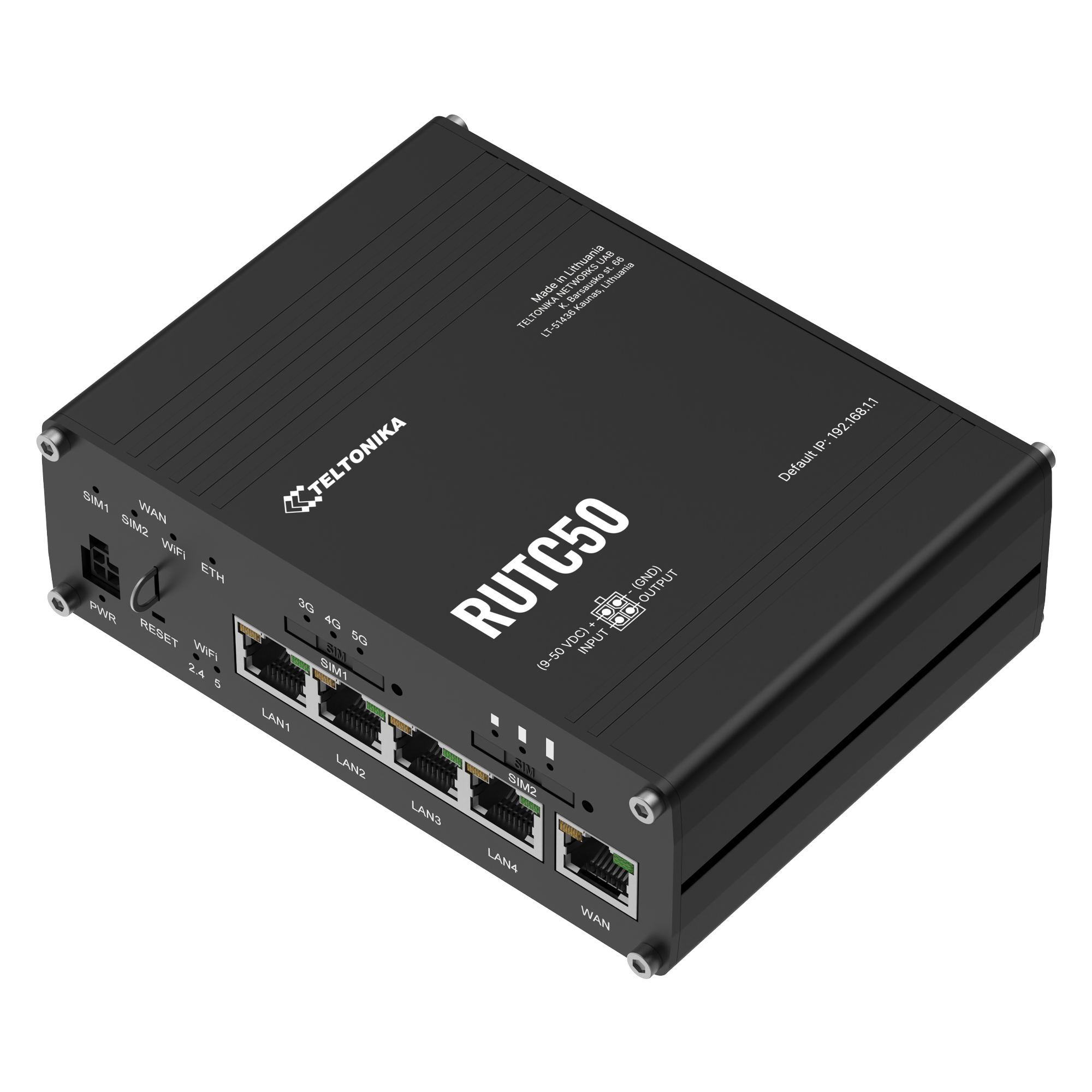 RUTC50 is a robust industrial 5G router equipped with 5x Gigabit Ethernet ports, WiFi-6, Dual-SIM, GPS, a powerful CPU and RutOS software for advanced networking solutions.