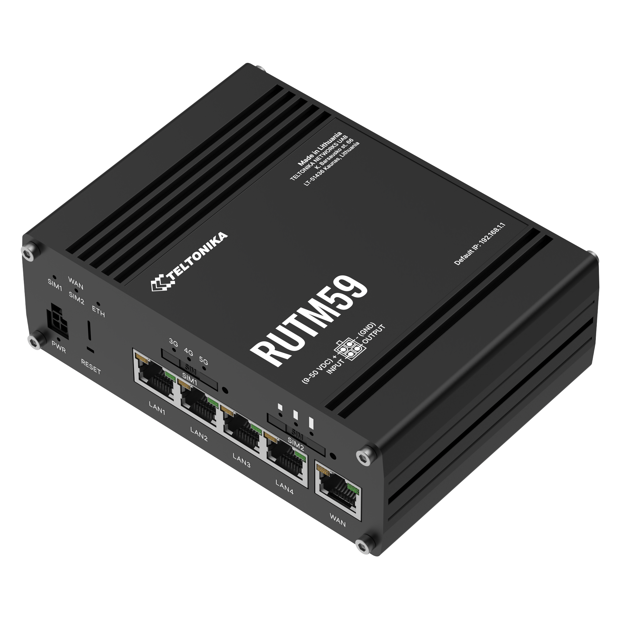 RUTM59 is a Teltonika Networks cellular 5G router with support for both SA and NSA 5G architectures, Dual-SIM, 5x Gigabit Ethernet ports, GPS, a powerful CPU and RUTOS software for advanced networking solutions.