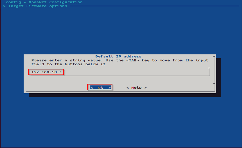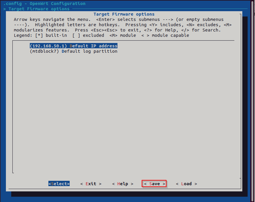 After entering the "make menuconfig" command, it will launch a new interface known as the "OpenWrt Configuration." In this interface, navigate to the "Target Firmware options" section.