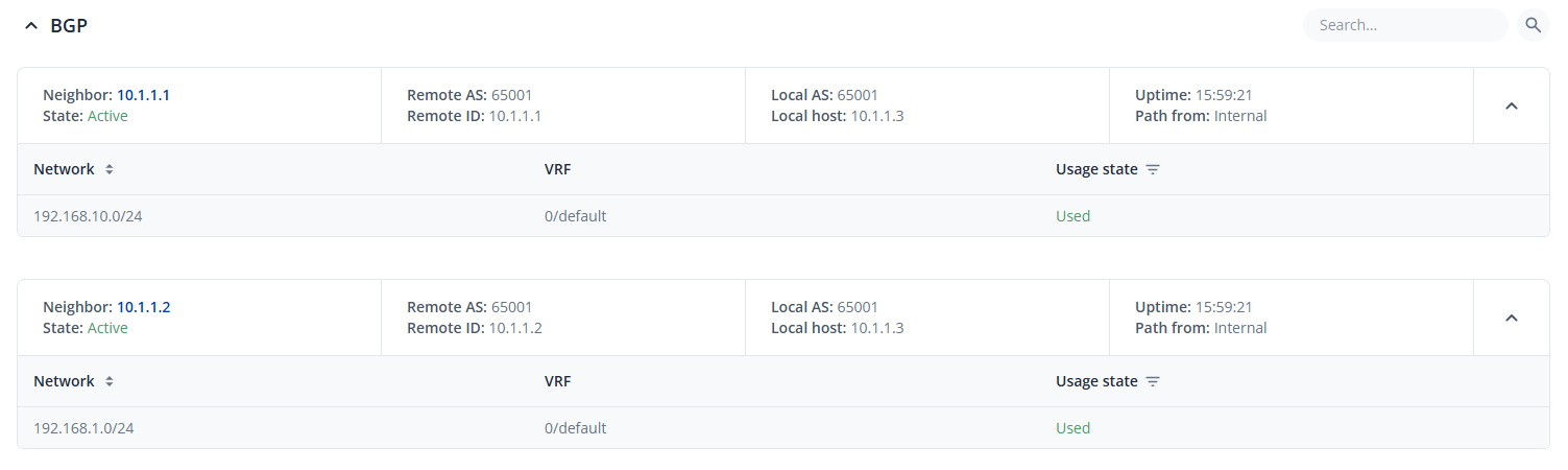 - Once saved and applied, the changes should be reflected in the BGP peers configuration section.