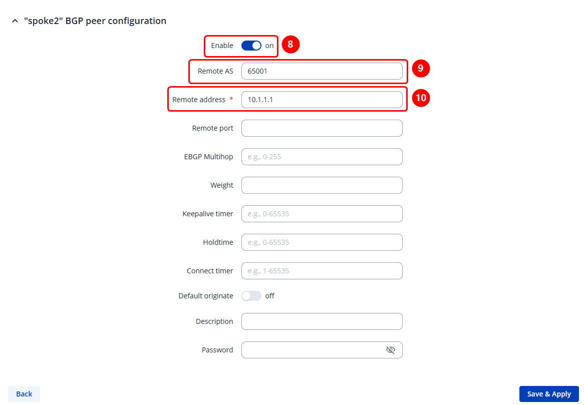 - Set Remote AS (should match previously set AS)