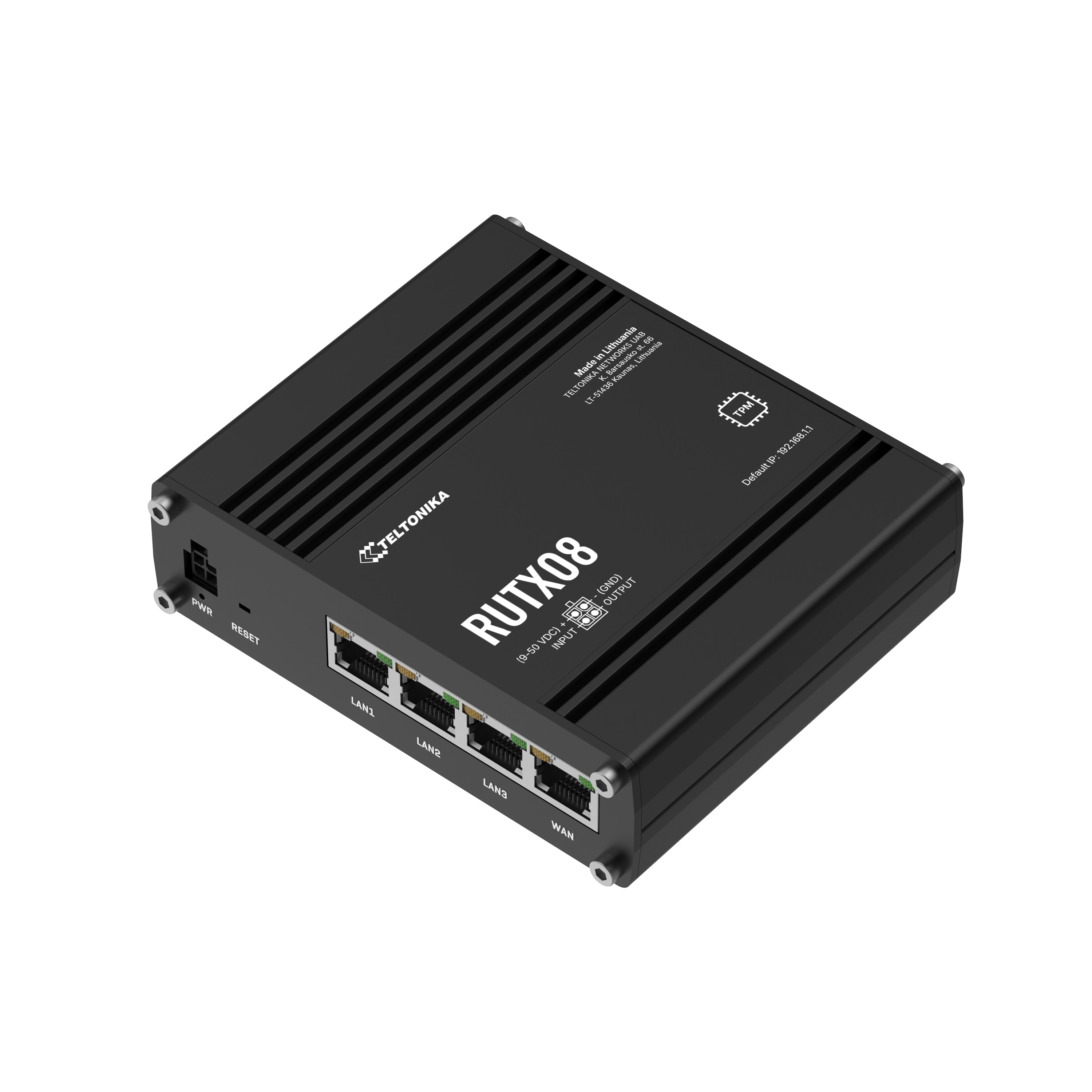 RUTX08 is a robust industrial router equipped with 4x Gigabit Ethernet ports, a powerful CPU and RutOS software for advanced networking solutions.