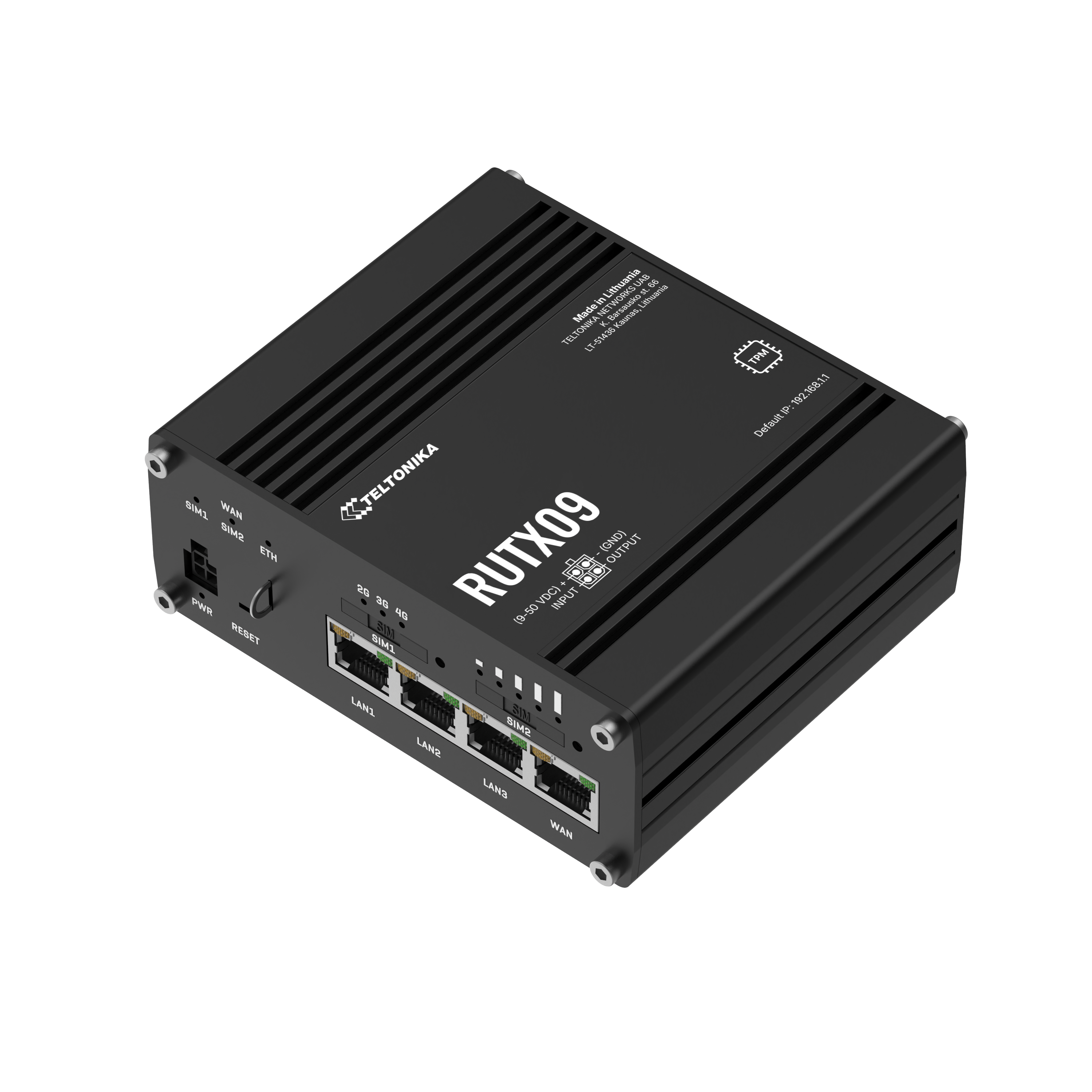 RUTX09 is a robust industrial LTE Advanced (LTE-A) router equipped with 4x Gigabit Ethernet ports, Dual-SIM, GPS, a powerful CPU and RutOS software for advanced networking solutions.