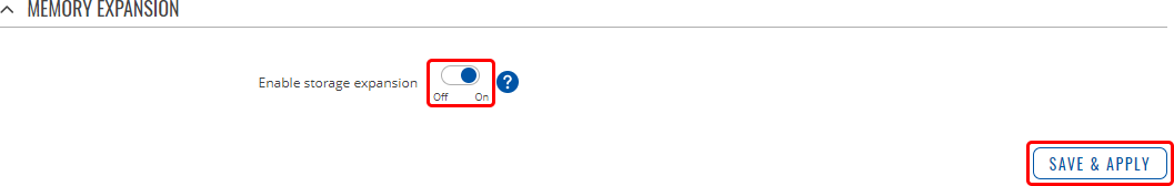 - Set the 'Enable storage expansion' slider to 'on' and click 'Save & Apply'.