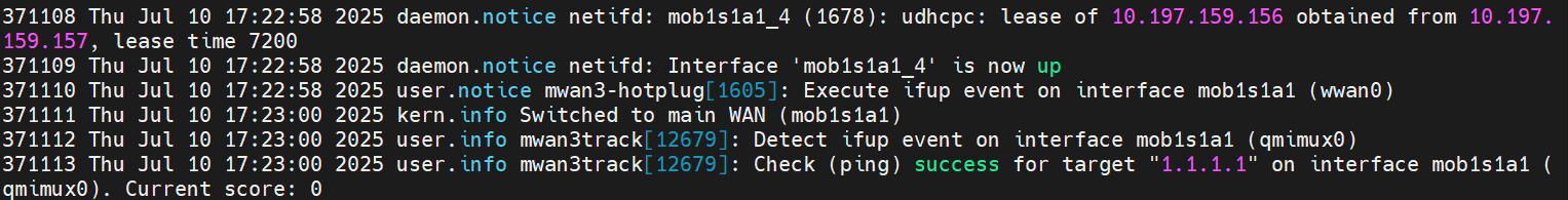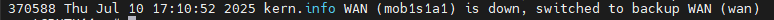 The below screenshots are the testing results when the primary WAN stopped and failover to 4G took place, and then failback to the primary WAN after the interface was enabled.