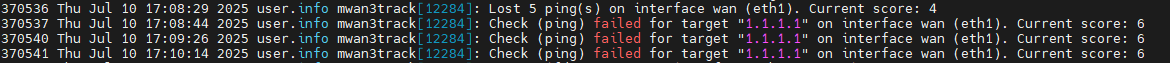 The below screenshots are the testing results when the primary WAN stopped and failover to Starlink took place, and then failback to the primary WAN after the interface was enabled.