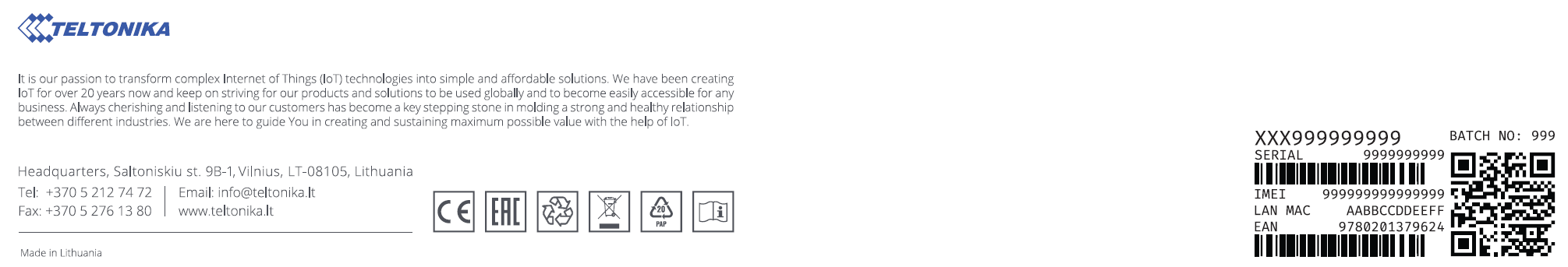 If no feedback is received within two weeks after the issue date of this notification - Teltonika may accept that this change has been tacitly accepted and can implement the change as indicated above