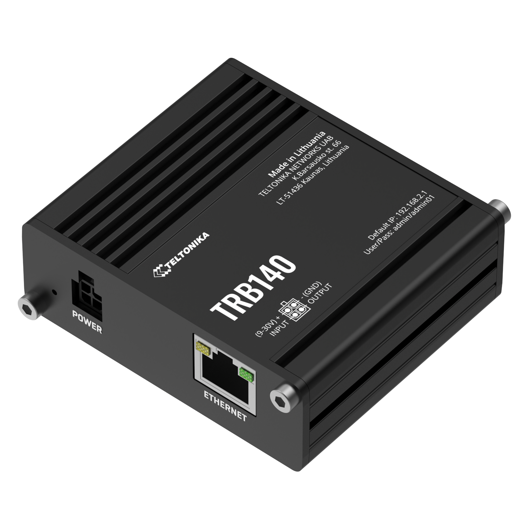 TRB140 is a compact industrial 4G (LTE) gateway equipped with a Gigabit Ethernet port, Micro-USB, a powerful CPU and RutOS software for advanced networking solutions.