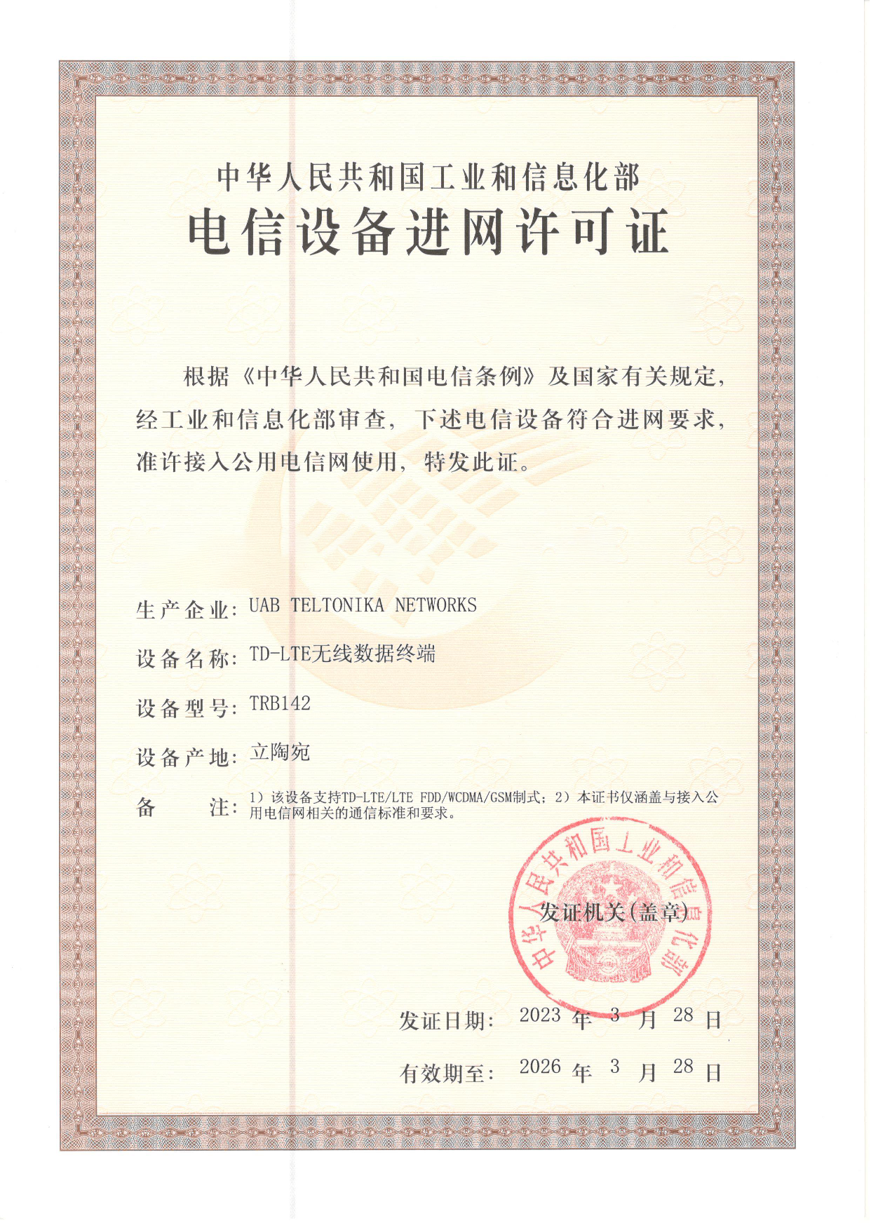 Products that use 2G (only in rural areas in China), 3G, 4G or 5G as the mobile communications standard also require an additional NAL license. The NAL license can only be applied for in addition to the SRRC certification.