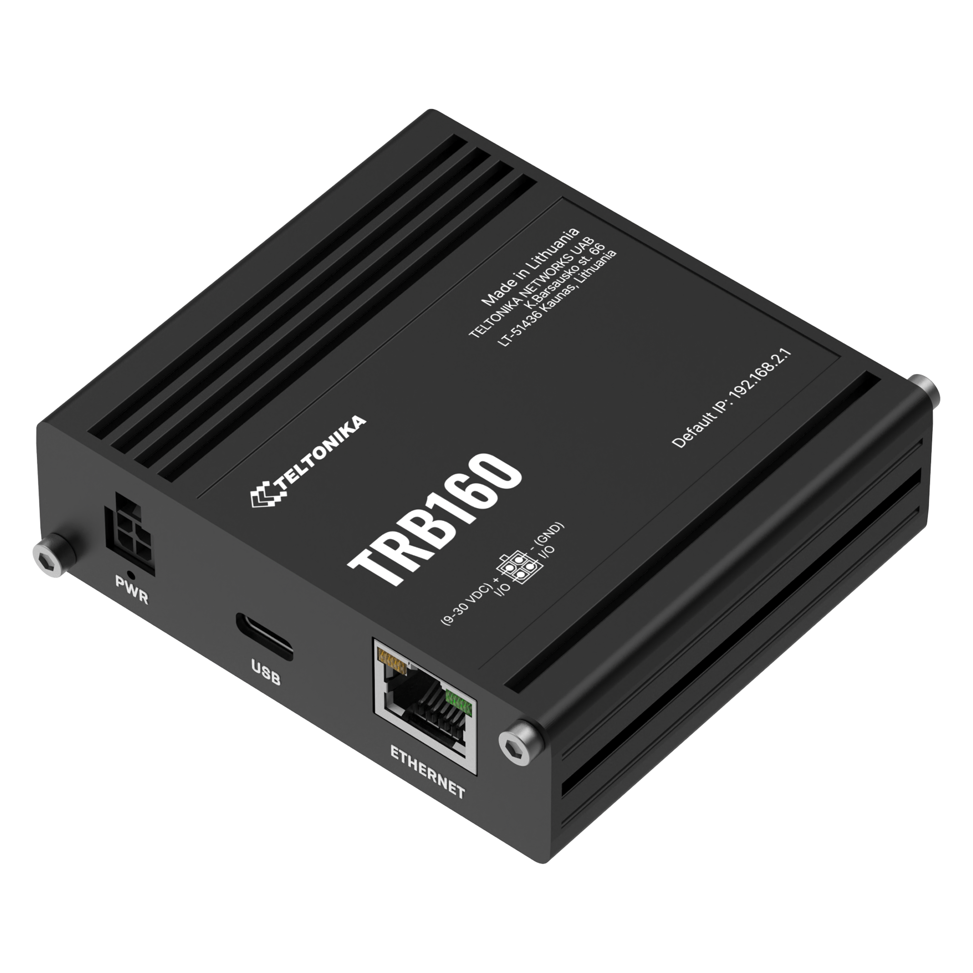 TRB160 is a compact industrial 4G (LTE) gateway equipped with a Gigabit Ethernet port, Type-C, a powerful CPU and RutOS software for advanced networking solutions.