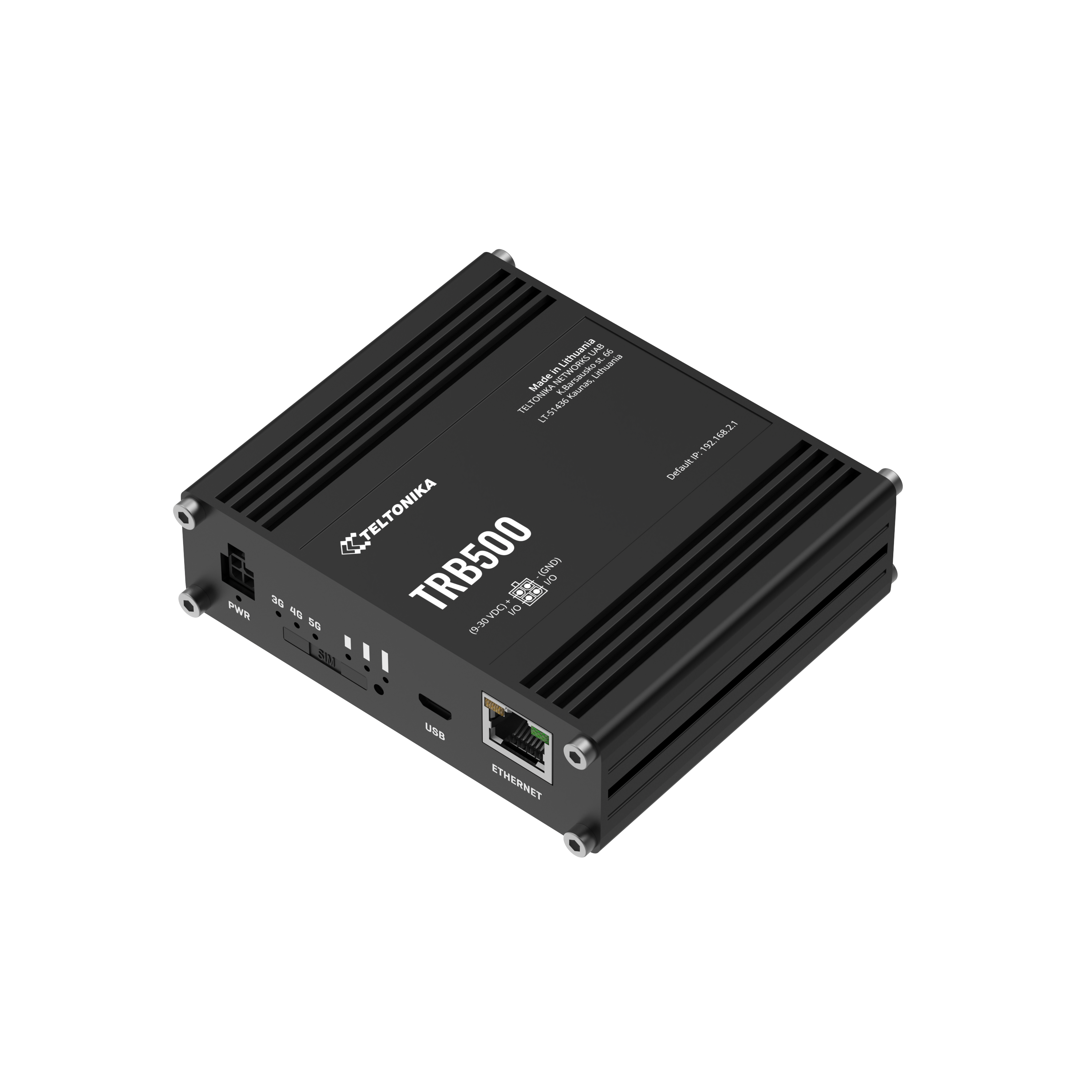TRB500 is a compact industrial 5G gateway equipped with a Gigabit Ethernet port, Micro-USB, a powerful CPU and RutOS software for advanced networking solutions.