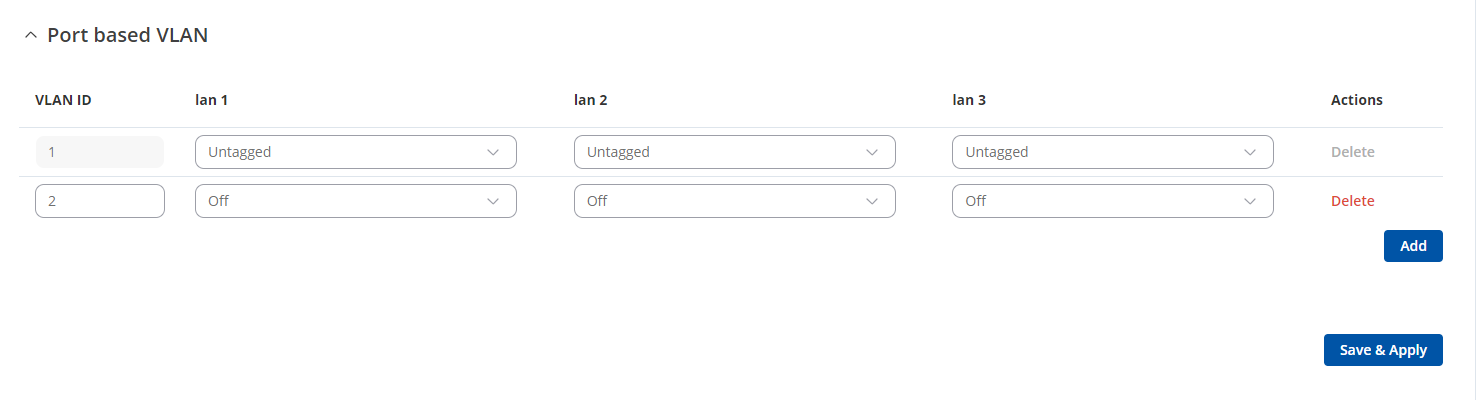 Note some of the devices when navigated to Network → Vlan → Port Based will not have any VLANs and only two will appear once