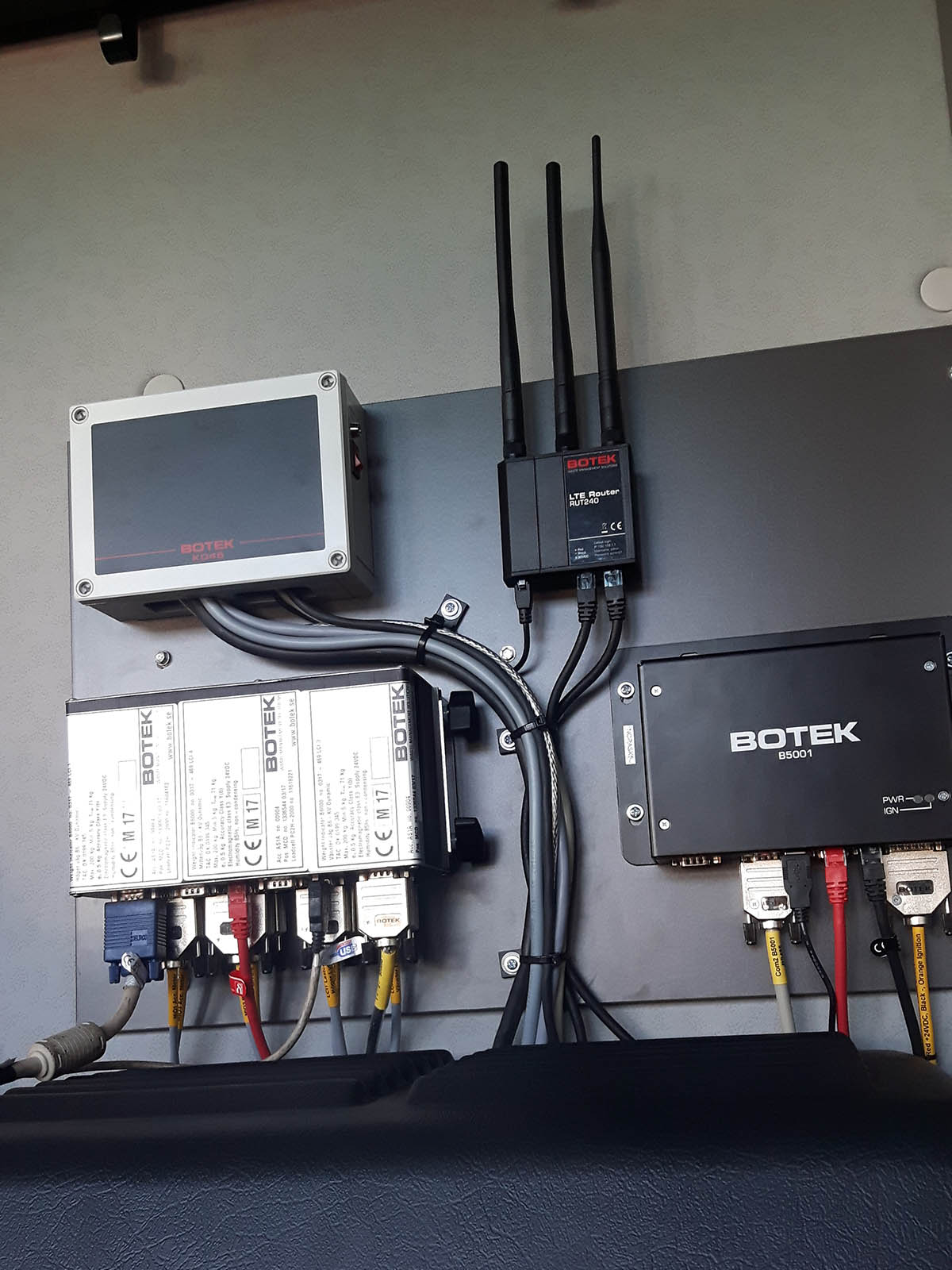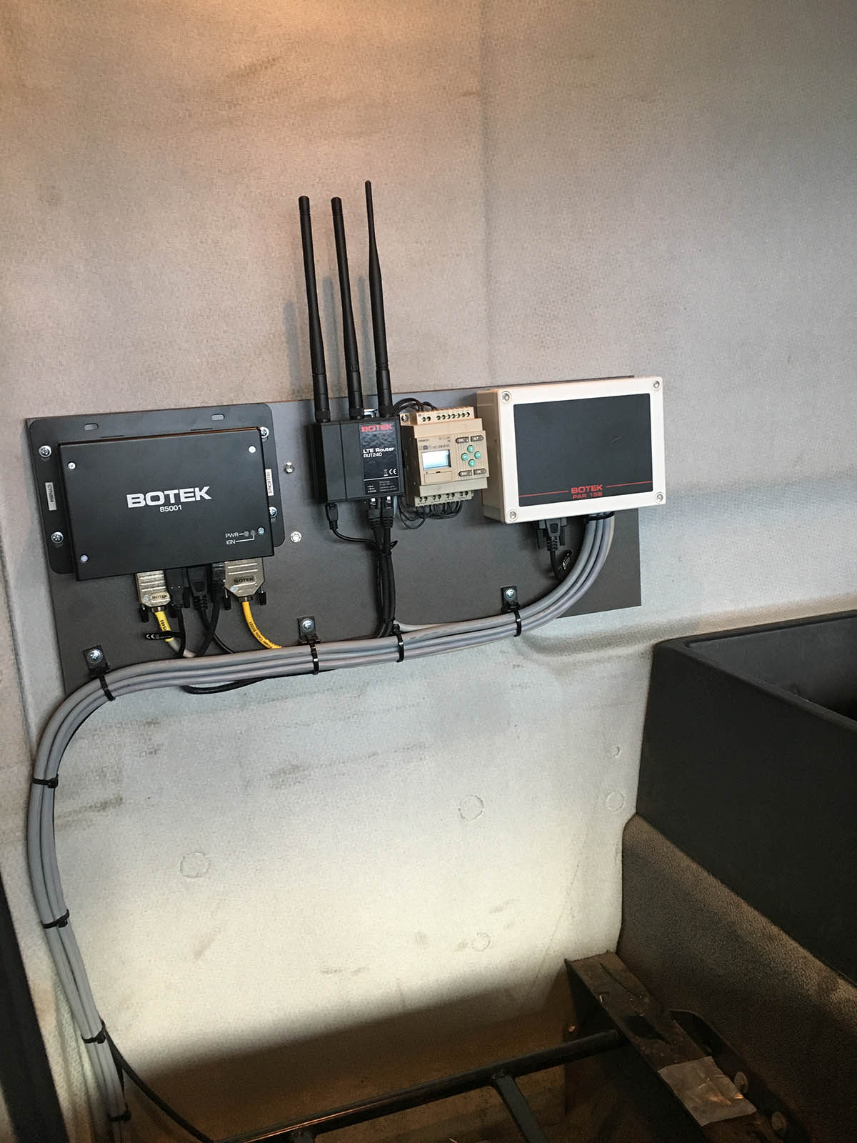 All waste collection vehicles equipped with a Botek system also include a Teltonika RUT240 router for real-time communication between trucks, server and office users.