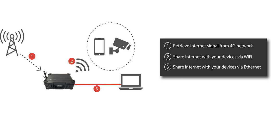 Providing the case with a 4G Internet connection and WiFi and Ethernet connections for local clients.