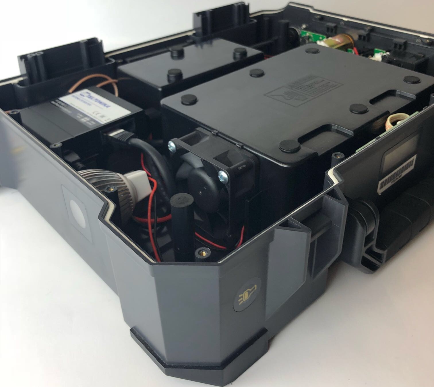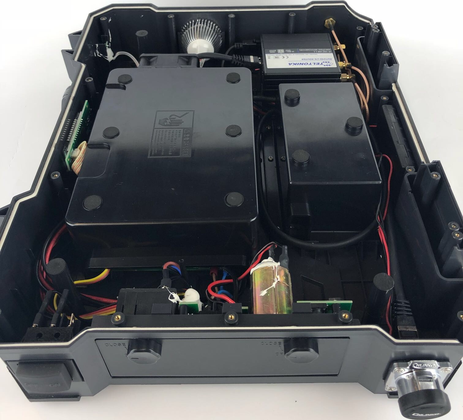 Implementing a RUT240 router into the case in order to supply it with a Cat4 LTE connection and a WiFi hotspot.