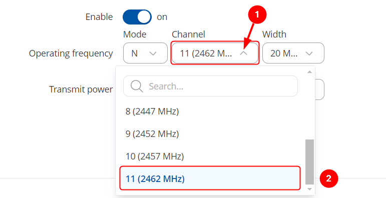 In router‘s WebUI, Navigate to Network → Wireless section → Radio → Wifi 2.4GHZ settings.