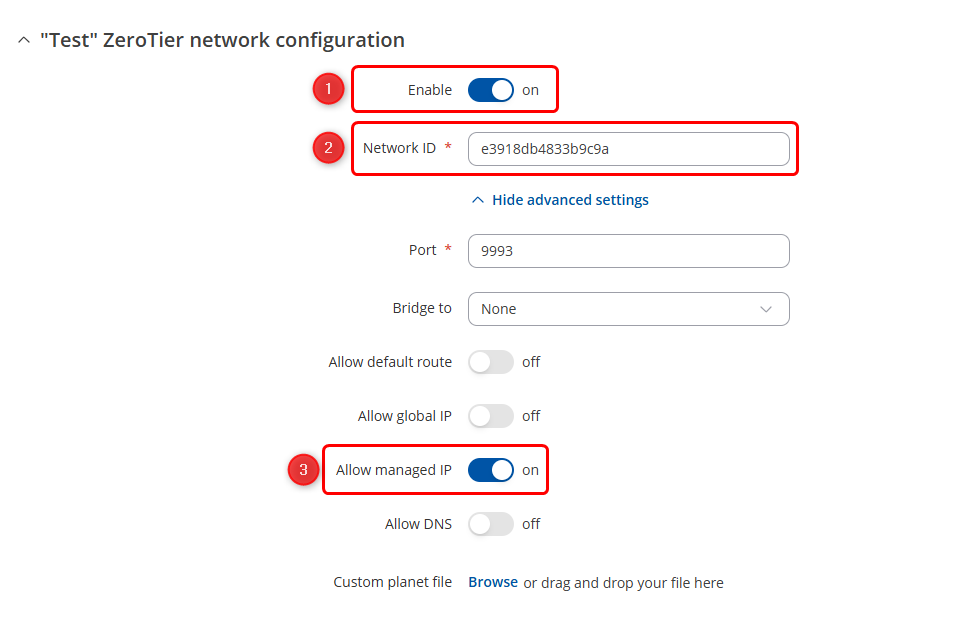 - NOTE: Make sure to remove any Managed IPs that might have stayed when the Auto-assigned feature was turned on (by default, ZeroTier keeps it on).