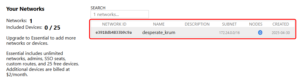 - Open your ZeroTier Portal (https://my.zerotier.com/) and navigate to your ZeroTier Network.